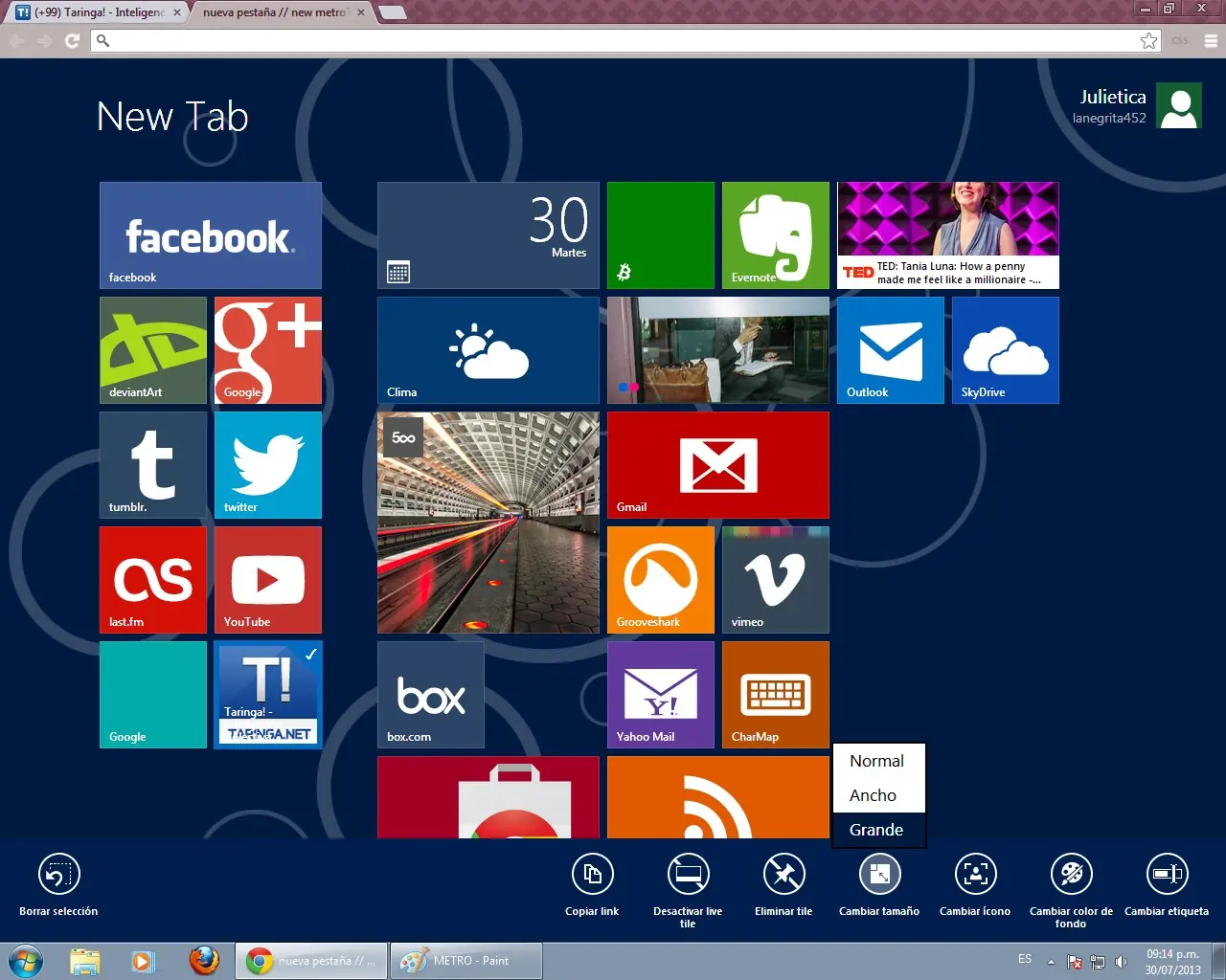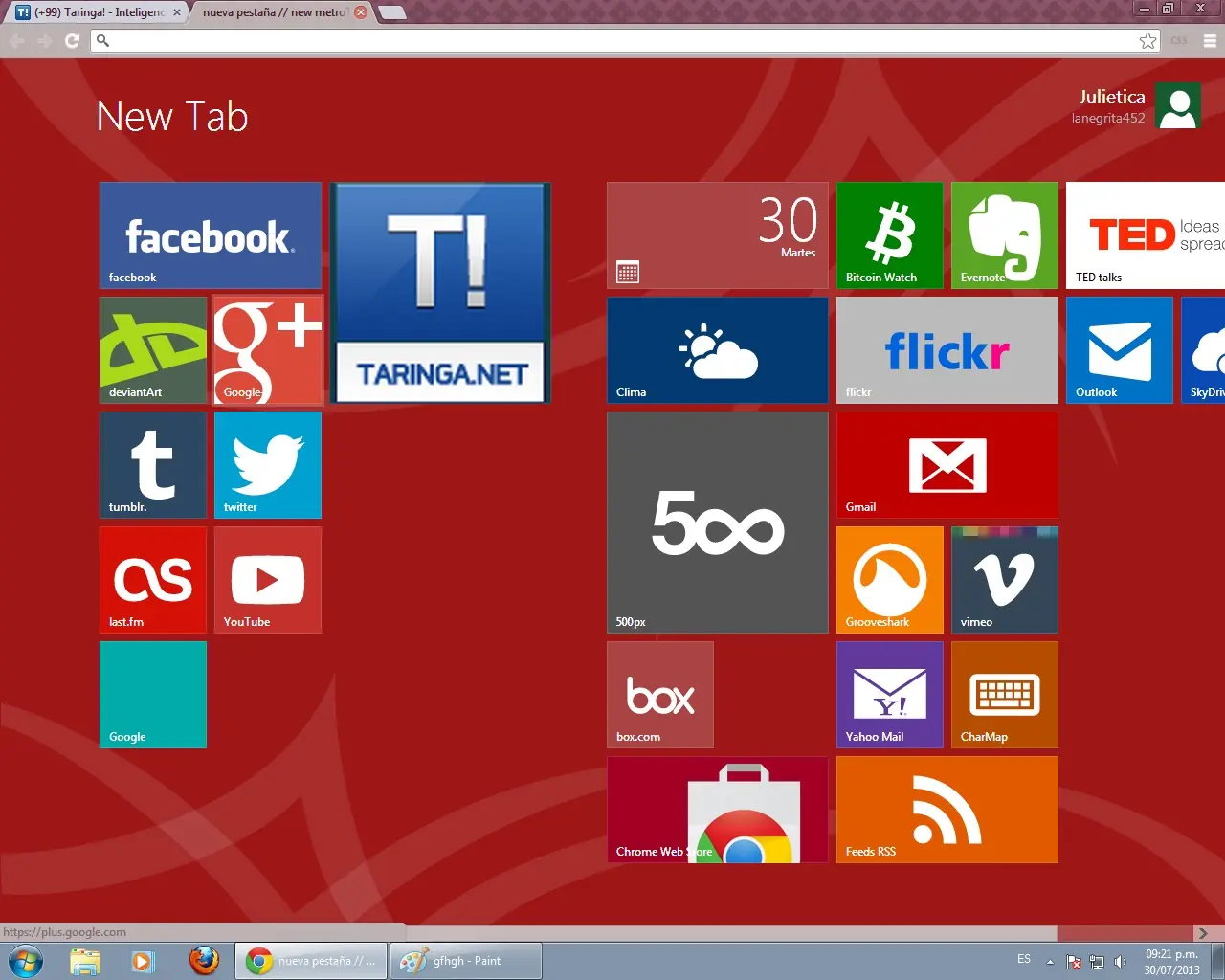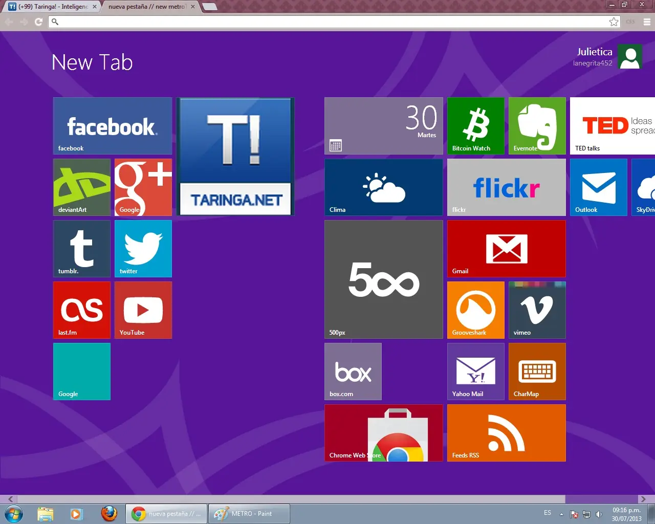 Básicamente es cambiar la apariencia de la página "Nueva pestaña" del Google chrome por una página que recuerda la pantalla de inicio del nuevo sistema de Microsoft, mucho más vistosa y colorida que la pantalla por defecto: