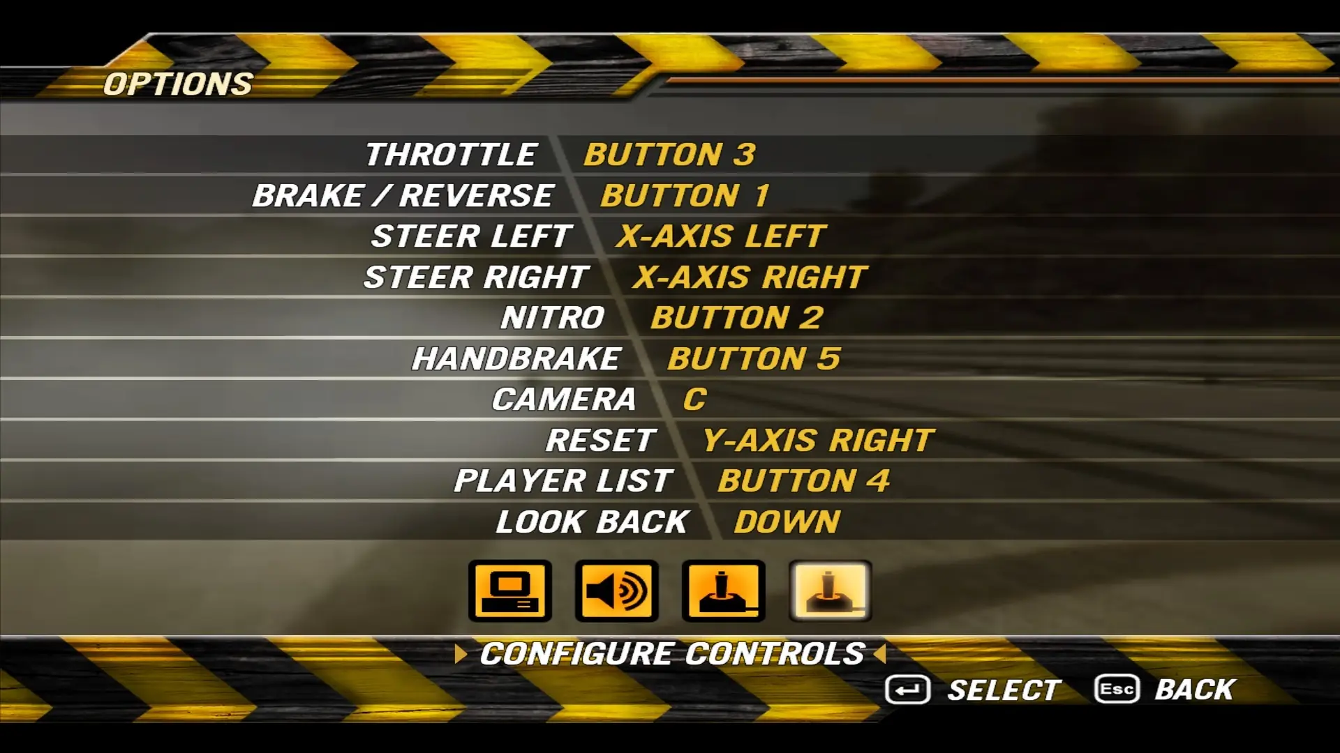 -Vamos a configuraciones de botones y configuran el mando a su gusto (Esta es mi configuración en FlatOut 2 usando el Joystick de 5 botones)