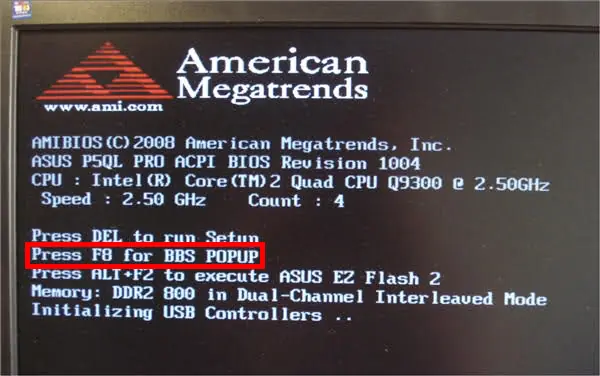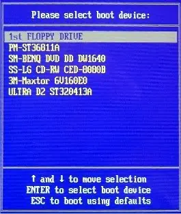 Ahora a reparar. Primero booteamos desde el disco ó USB. esto lo hacemos configurando el bios para que arranque desde el dispositivo deseado, o simplemente apretamos F8 (o la tecla que el bios nos indique) para que aparezca el menú de arranque, el cual nos permite seleccionar desde donde arrancar
