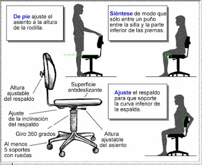 La siguientes imágenes presentan consejos para mantener una ergonomía adecuada en nuestro puesto de trabajo: