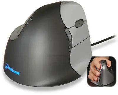 El Vertical Mouse 2 de Evoluent es un mouse vertical, su diseño supuestamente ergonómico debería convertirlo en el ratón más cómodo del mercado, ya que no hace falta girar la muñeca, solo hay que arrastrarlo de forma natural con el pulgar hacia arriba