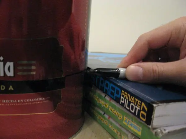 La cortaremos con unas tijeras o tenazas. Una forma fácil de marcarlo es utilizando unos libros como apoyo, para nuestro lápiz. Sencillo, rápido y muy eficaz.