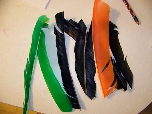 Es la hora de las plumas. Nuestras flechas necesitan de las plumas para seguir la trayectoria sin desviarse. Lo mejor que podemos hacer es comprar las plumas. En nuestro caso se han usado plumas de pavo teñidas. Se cortan por la mitad del cañon y con una dremel se deja lo más liso posible.