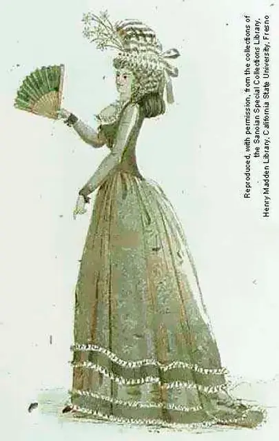 En esa época las mujeres de la corte acostumbraban a usar un rollo de material rígido conocido como “bum roll” alrededor de sus cinturas y bajo sus vestidos para mantener ese incómodo aro en su posición.