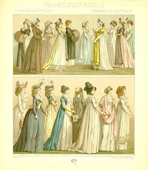 En muchos casos las francesas de esa época vestían como única ropa interior una banda alrededor del cuerpo, muy similar al zóster de las antiguas griegas, debajo se sus vestidos entallados que remarcaban sus figuras voluptuosas.