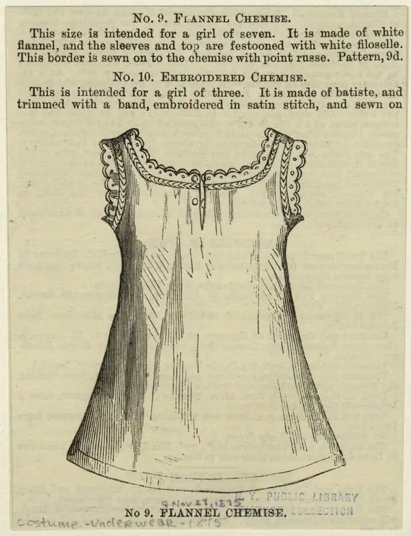 Típicamente las mujeres usaban la "chemise" debajo de la enagua y posteriormente por debajo del corsé.