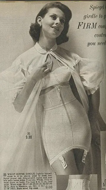 El glamour de los 1950s una vez más pasó a revalorizar la figura del "reloj de arena" para definir el cuerpo ideal de la mujer. Mitos como Marilyn Monroe lanzan la imagen de mujer seductora y sensual, ayudada por las prendas de vestir, el raso, las transparencias y las modas de la lencería.