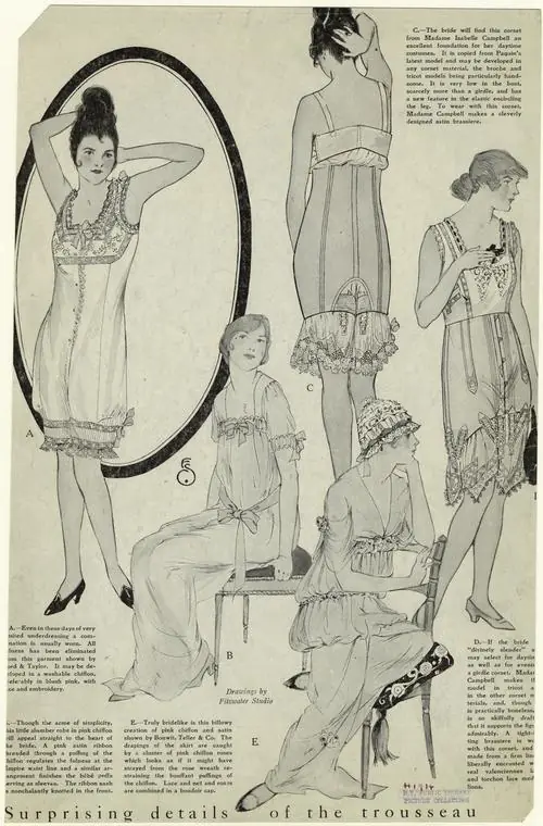 La cantidad de prendas interiores no distinguía clases sociales, aunque sí se diferenciaban las mujeres ricas de las pobres por la calidad de las telas y adornos ocultos debajo de sus vestidos que llegaban al piso.