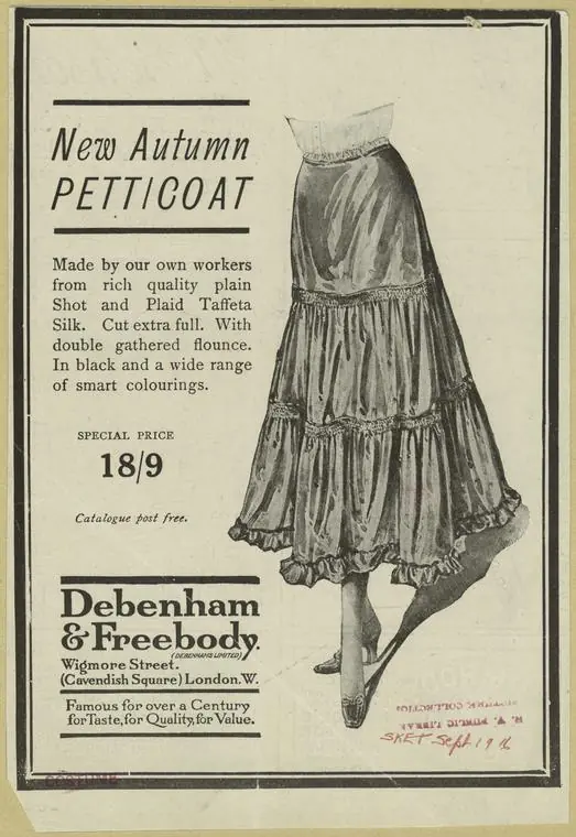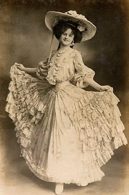 Las bragas de las primeras bailarinas de tango europeas y norteamericanas estaban confeccionadas en sarsenet o seda y adornadas con volados de encaje.