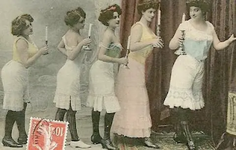 En 1876 fueron inventadas las ligas que se sujetaban a las medias de mujer y las bailarinas francesas del can-can generaban gran excitación cuando dejaban ver pequeños vistazos de los ligueros que atravesaban sus muslos. Además de esto las ligas eran confortables y funcionales porque anclaban el corsé hacia abajo, de manera tal que no se elevara en demasía, permitiendo que no fuera tan apretado ni rígido.