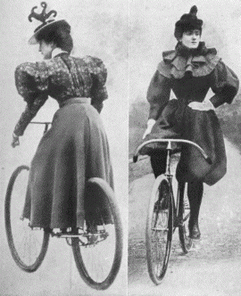La creación de los vestidos para caminar y andar en bicicleta durante la Era Victoriana trajo también la invención de los shorts y las bragas que eran sujetadas individualmente a una cinta o faja que se abrochaba por la espalda. Por primera vez en la historia las mujeres pasaron a tener tanto un "doble" guardarropas como un doble juego de ropa interior, uno para estar a la moda y otro para los "ejercicios atléticos".