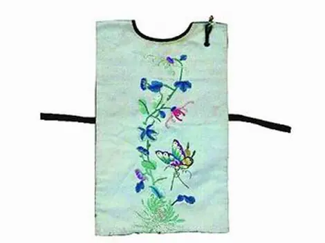 el dudou, una especie de delantal en forma de diamante o cuadrado que cubría los pechos y el bajo vientre y se ajustaba por detrás y que aún hoy se sigue usando