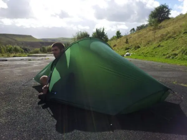 Todo lo que tenía era una tienda de campaña, pero no cualquier tienda, una Terra Nova Photon Laser 1.5-man tienda - una de las más ligeras en el mundo que pesan menos de 800 g. Me gustó mi tienda, pero pronto me di cuenta de que se estaba bastante inútil en la ciudad, y nos dieron una bolsa de vivac en su lugar.