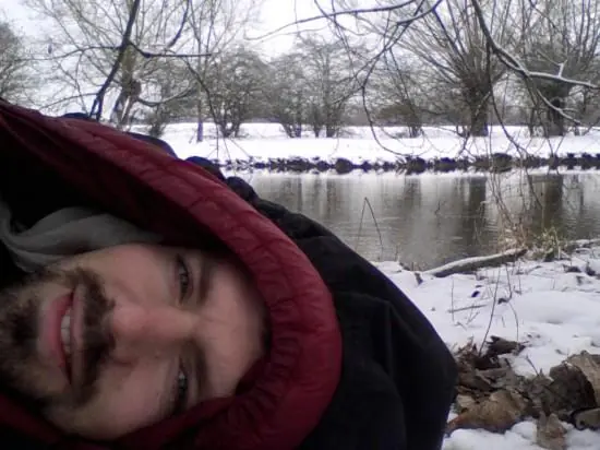 Tenía préstamos estudiantiles y otras deudas que no había sido capaz de limpiar por varios años. Y entonces, un buen día, se dio cuenta de lo absurdo que era todo. "Recuerdo especialmente una tarde miré alrededor de mi piso, miró a mi TV LCD y pensé, ¿Cuándo fue la última vez que tuve tiempo para ver eso? Luego miré a mi Playstation y nunca había jugado aún. Todavía tenía esa montaña de deuda de los estudiantes, de la deuda de préstamo bancario que todavía estaba tratando de solventar. Y al final, pensé que lo único que realmente valoraba de estar en mi departamento era la ducha de agua caliente. De Todo lo demás, puedo prescindir. "
