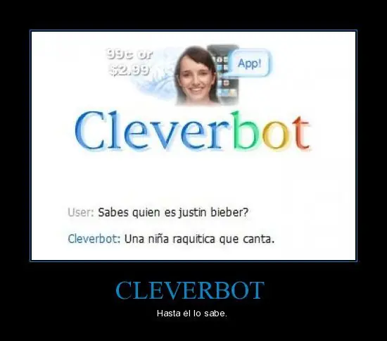 Desarrollado por Rollo Carpenter, Cleverbot aprende a conversar como un humano sin emplear mecanismos formales sino extrayendo conclusiones sobre el modo en que nos comunicamos partiendo exclusivamente de una base de datos con mas de 20 millones de conversaciones almacenadas extraidas de chats, hilos de comentarios etc.... Los resultados son aún muy limitados pero es de esperar que mejoren sustancialmente a medida que el aprendizaje siga avanzando.