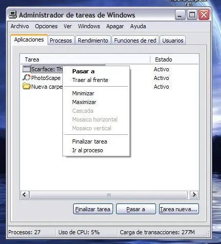 Después verificamos cual es el proceso al que le daremos mayor prioridad, yo en mi caso abrí el juego Scarface, y el proceso se llama Scarface.exe
