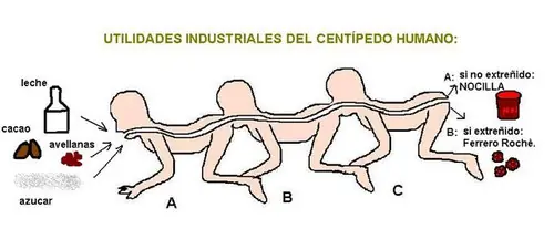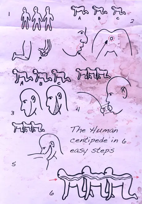 El cienpies humano (Del Inglés Human centipede), es un complejo experimento de cirugia del Doctor Heiter, un especialista en separación de siameses, quien intenta fusionar los sistemas digestivos de tres personas, en contra de su voluntad