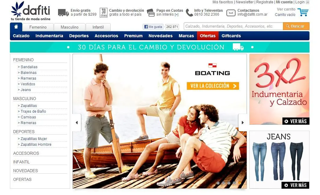 En Dafiti vas a encontrar zapatos, ropa y accesorios online. Esta tienda ofrece las mejores marcas del mundo de la moda en indumentaria, calzado, accesorios y deportes. Cuentan con una variedad de productos para hombres, mujeres y niños, para satisfacer todos los gustos. También te ofrecen envío y cambio gratis.