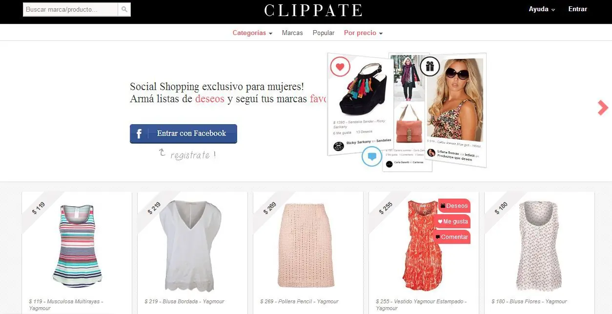 Clippate es una tienda online con una interfaz del estilo de la de Ofelia Feliz en la que vas a encontrar todo lo que querés para verte linda: zapatos, carteras, remeras, pantalones, accesorios y mucho más. Hacé click en comprar en lo que te guste y serás redirigida al sitio de compra de la marca. Es muy fácil!