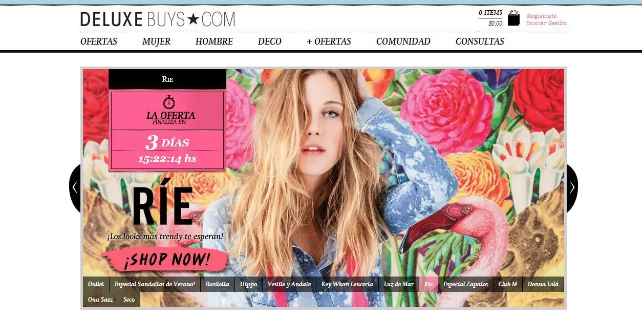 Deluxebuys es un Shopping Online de moda y tendencia que ofrece en forma exclusiva para su comunidad productos de las mejores marcas Argentinas e internacionales con descuentos de hasta el 70%. Es una página muy similar a Trendsetters, aunque con una mayor cantidad de productos.