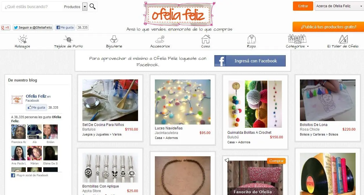 Ofelia Feliz es el primer mercado latinoamericano donde los productores independientes, diseñadores y artesanos venden sus productos. Es una comunidad que elige productos únicos, no masivos y que son vendidos directamente por sus fabricantes originales. Tanto vendedores como compradores utilizan esta comunidad virtual de forma gratuita, fácil y rápida. Si sos de Argentina, México, Colombia, Brasil, Chile, Perú, Uruguay, Venezuela o España podés publicar tus cosas o comprar los productos que más te gusten.