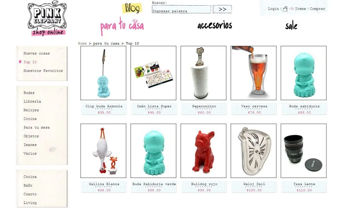 Pink Elephant es una tienda online de artículos de diseño para tu casa, entre los que podrás encontrar desde tazas hasta budas, pasando por agendas, relojes, lámparas, vasos, servilleteros, imanes y mil cosas más super originales. También hay accesorios como aros, collares y pulseras lindísimos.