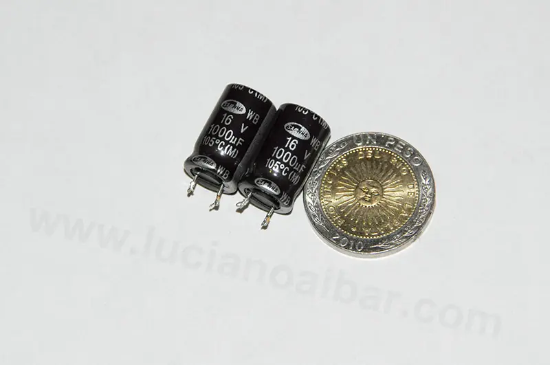 En este caso necesito reemplazar dos capacitores de 1000uf, 16volts c/u