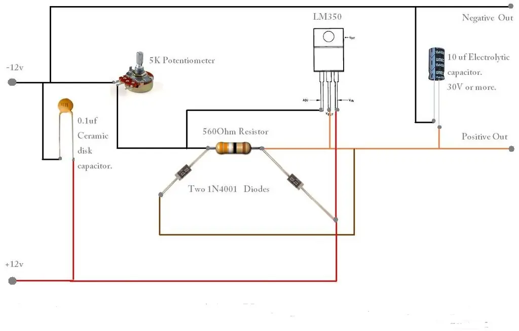 -LM350 (3A Regulador de Voltage. Para hacer funcionar el LED, ver , datasheet )