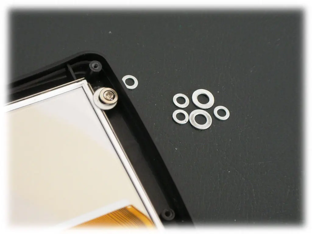 3.-Usa los mismos tornillos que sujetaban el circuito para sujetar el LCD con las arandelas.