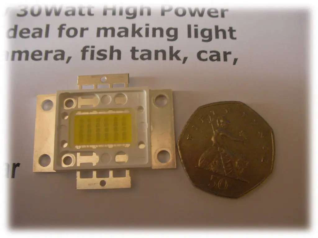 El LED de alta potencia necesitar ser fijado en un buen disipador de temperatura. El disipador que yo estoy usando esta bien, pero quizas uno un poco mas grande seria incluso mejor. El ventilador es para ayudar al disipador a mantener el LED frio.