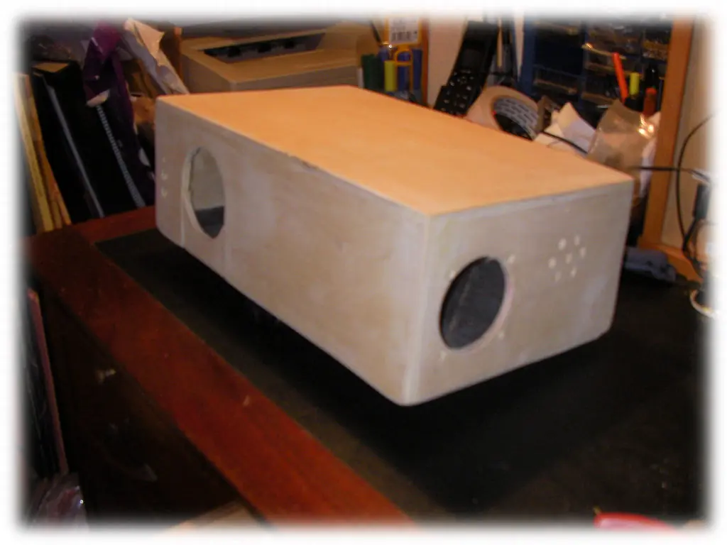 Mi caja esta echa de contrachapado. Le hice una tapa que se fija con tornillos por debajo para que no se vean tornillos por los lados.