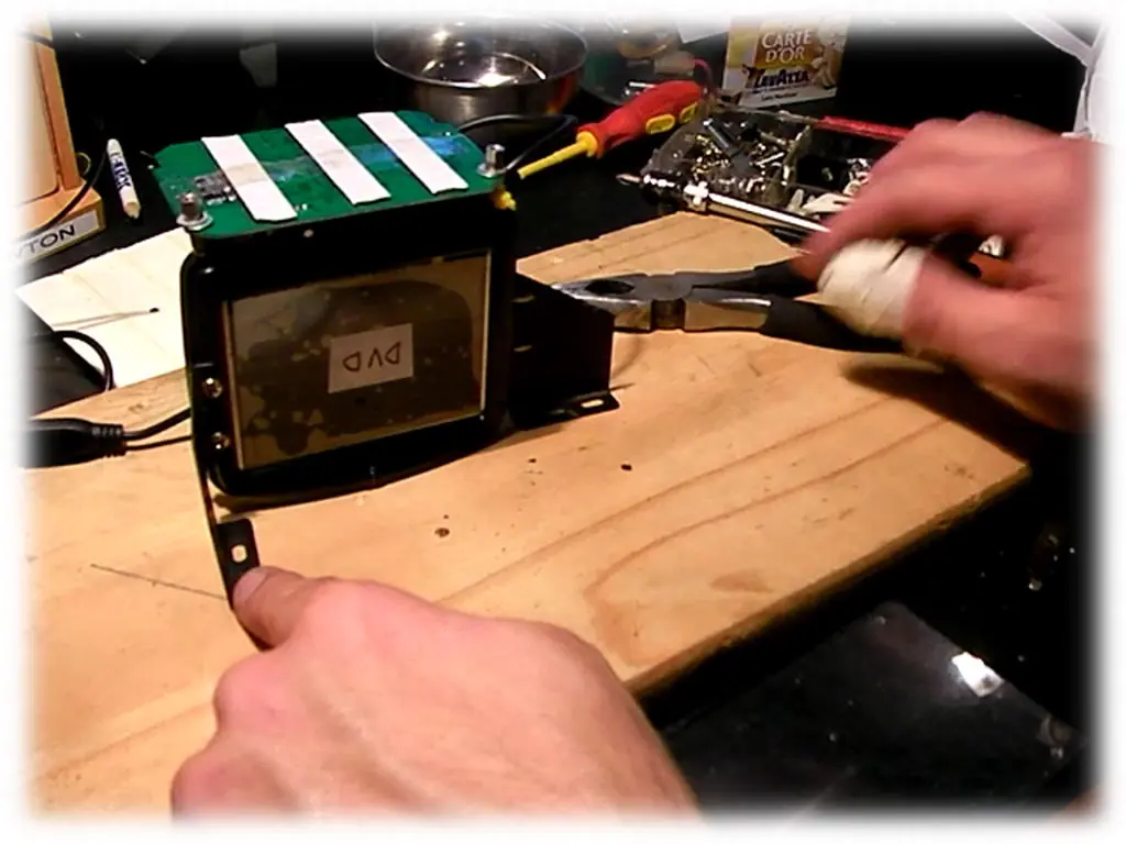 -Pon un poco de cinta de pintor en la pantalla y escribe algo como DVD. Así sabras la direccion de la pantalla incluso sin tenerla encendida.