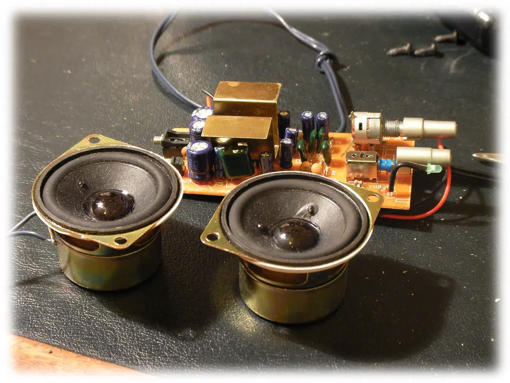 Para el sistema de sonido usé unos altavoces para PC. Funcionan a 12v así que incluso mejor dado que ya tengo que usar un regulador de voltaje que baje a 12v para la pantalla.