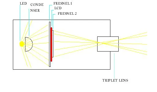 El principio es muy simple. Una fuente potente de luz es proyectada a través de un LCD a una lente, y así se proyecta la imagen.