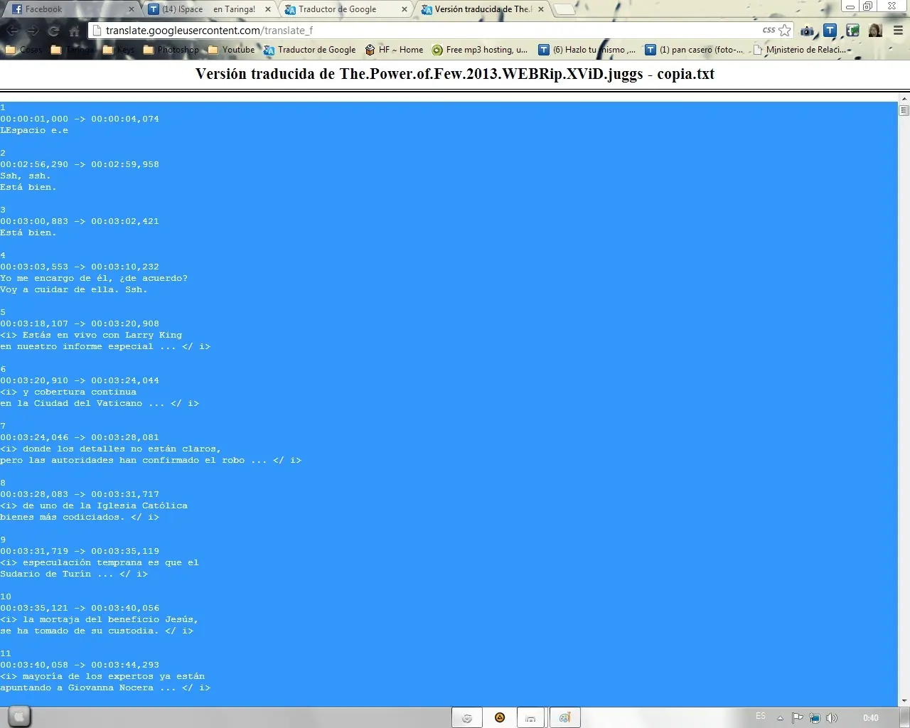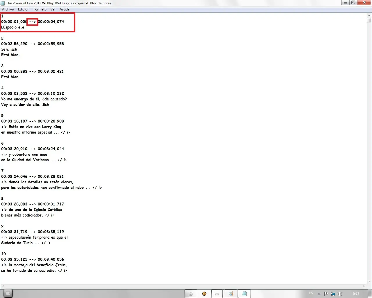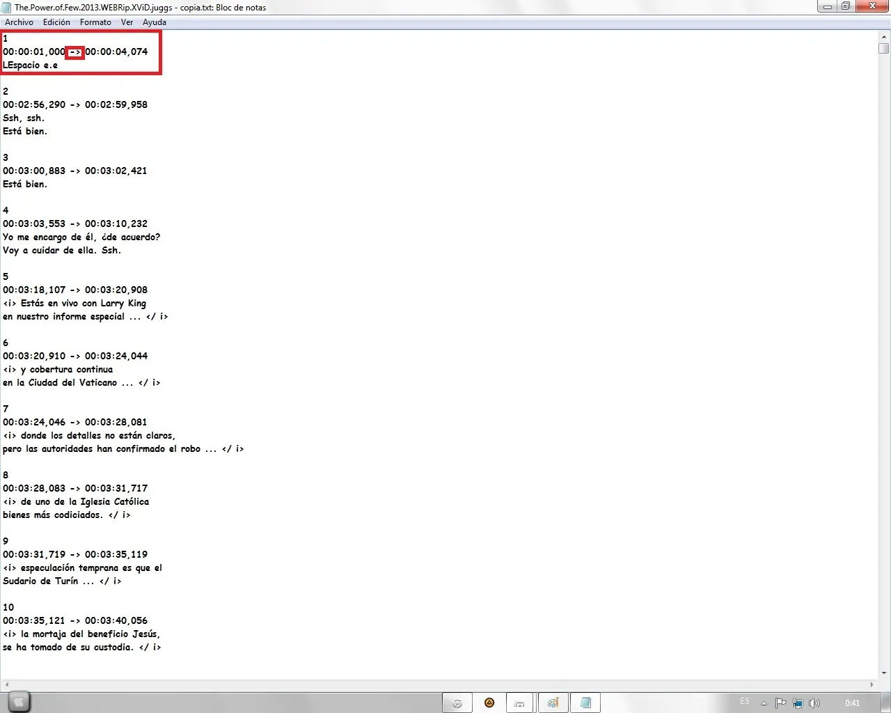 15º Paso: Guardamos el .txt y volvemos a cambiar el .txt a .srt "El archivo traducido es el que dice copia en este caso"