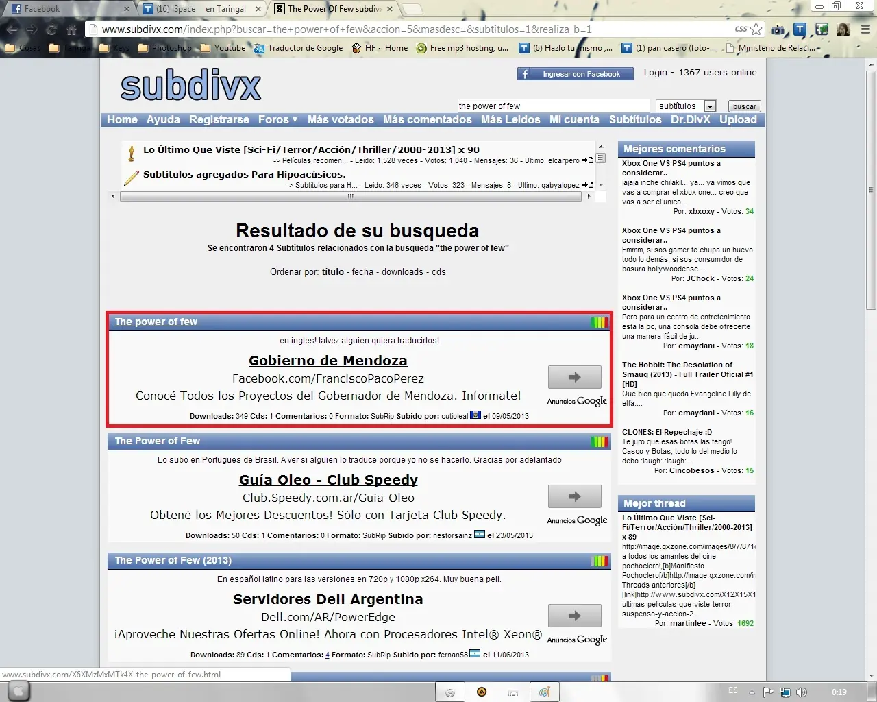 1er Paso: Vamos a la pagina de preferencia "www.subdivx.com" o en donde se encuentre el subtitulo.