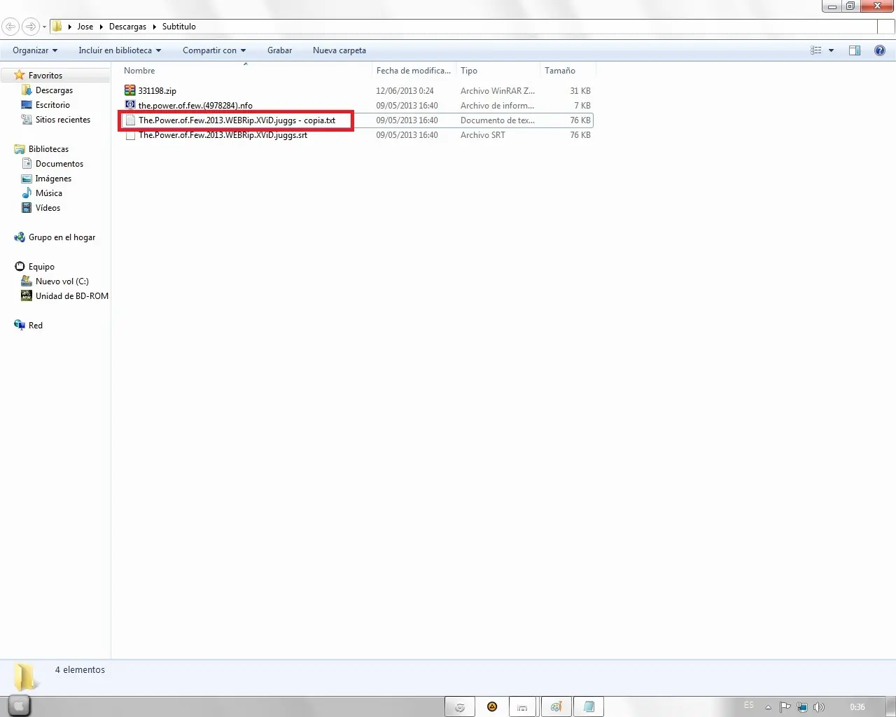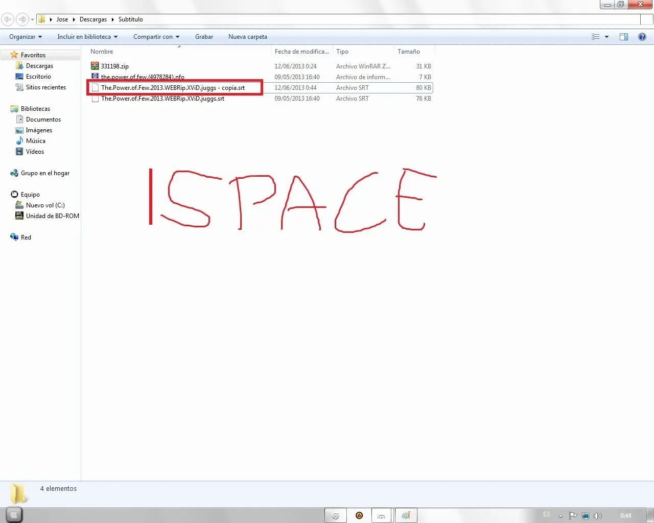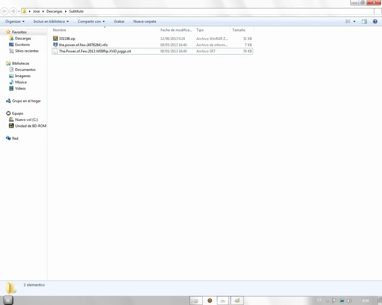 4to Paso: Extraemos el .rar o .zip del subtitulo.