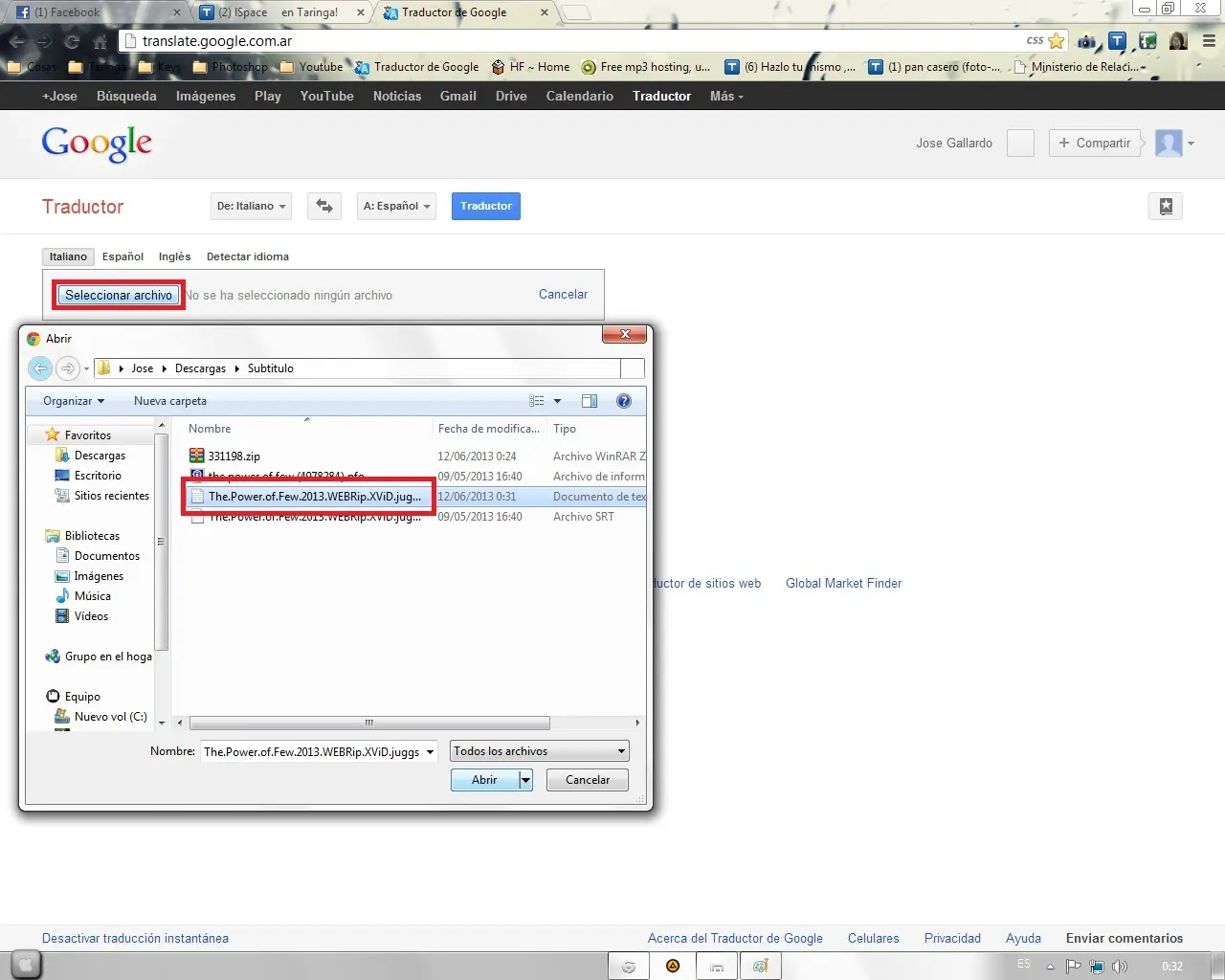 8vo Paso: Le damos a "Seleccionar Archivo" y seleccionamos el .txt "Ojo: el .srt NO, el .txt"