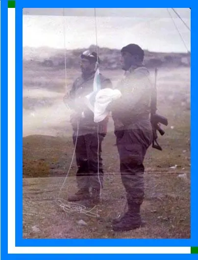 NUESTROS COMANDOS ANFIBIOS, SMIMII GUILLERMO RODRÍGUEZ Y CFIM SÁNCHEZ SABAROTS A PUNTO DE IZAR EL PABELLÓN ARGENTINO EN MALVINAS DESPUÉS DE 149 AÑOS DE USURPACIÓN Y LUEGO DE HABER TOMADO EL CUARTEL DE ROYAL MARINES (SEGUNDO OBJETIVO DE LAS FUERZAS ESPECIALES).