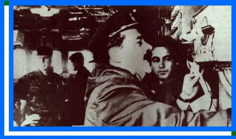 EL COMANDANTE DEL BDT ARA CABO SAN ANTONIO DANDO LA ORDEN DE INICIO DE LAS OPERACIONES EN EL BUQUE, BAJO LA MIRADA PREOCUPADA, PERO CONFIADA DE NUESTRO COMANDANTE DE LA FUERZA DE DESEMBARCO, CLIM CARLOS ALBERTO BÜSSER