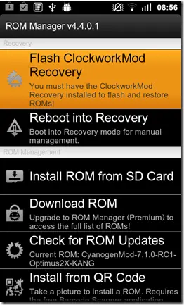 ROM Manager nos permite hacer muchas más cosas, aparte de flashear ROMs. Entre otras y dependiendo si es la versión de pago o no, podremos :