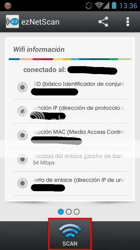 Iniciamos la aplicacion, les aparecera abajo un icono wifi Que dice Scan, le damos ahi y empezara a analizar nuestra red