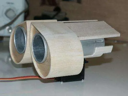 El tubo ocular principal era un par de envases de píldoras de aleación, que funcionaba a ser del tamaño adecuado para la cabeza. El LED azul x 6, 3 en cada ojo están montados en un disco acrílico 5mm y se inserta en el tubo de casi 2/3rds abajo y luego otro disco acrílico delante con el sonar ping en cada sonda de ping eye.The es de TX y RX tuvo que ser retirado del tablero [complicado y un cable de extensión [apantallado] ejecutar desde la tarjeta a la TX y RX en cada ojo.