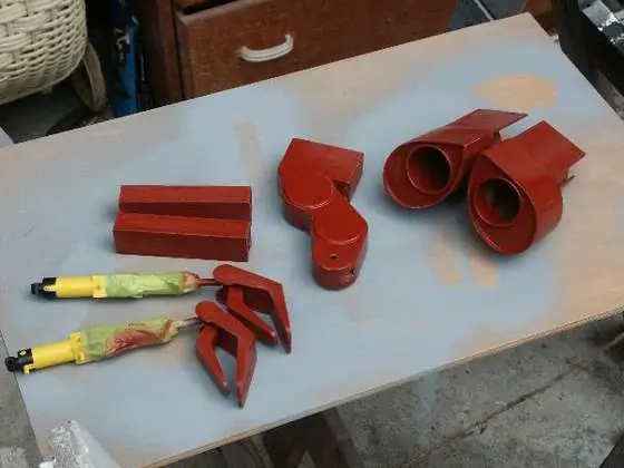 Todo el cuerpo se frota luego con almohadillas Scotchbrite hasta que el óxido y un poco de plata se muestra a través de, a continuación, aerógrafo con una mezcla de barniz satinado y de imprimación gris para dar a Wall-E que capeado la cabeza effect esto se hizo de una manera similar pero con diferente colores.