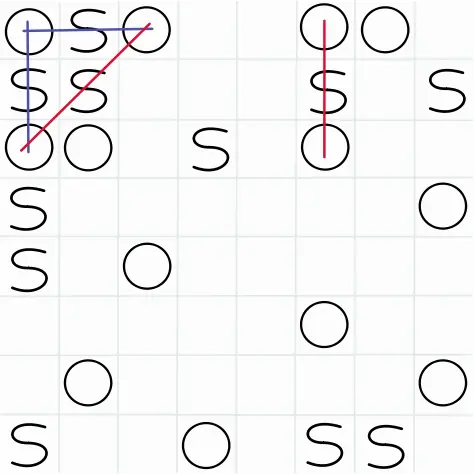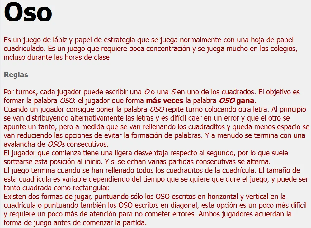 - Colocando varias eses en linea se forma una cadena de palabras consecutivas si el rival comete un error.