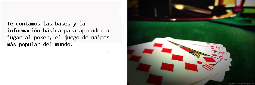 El poker es uno de los más populares juegos de cartas del mundo. Es fácil de aprender, y sólo se requiere algo de astucia y de suerte para jugarlo con corrección y muy buenos resultados.