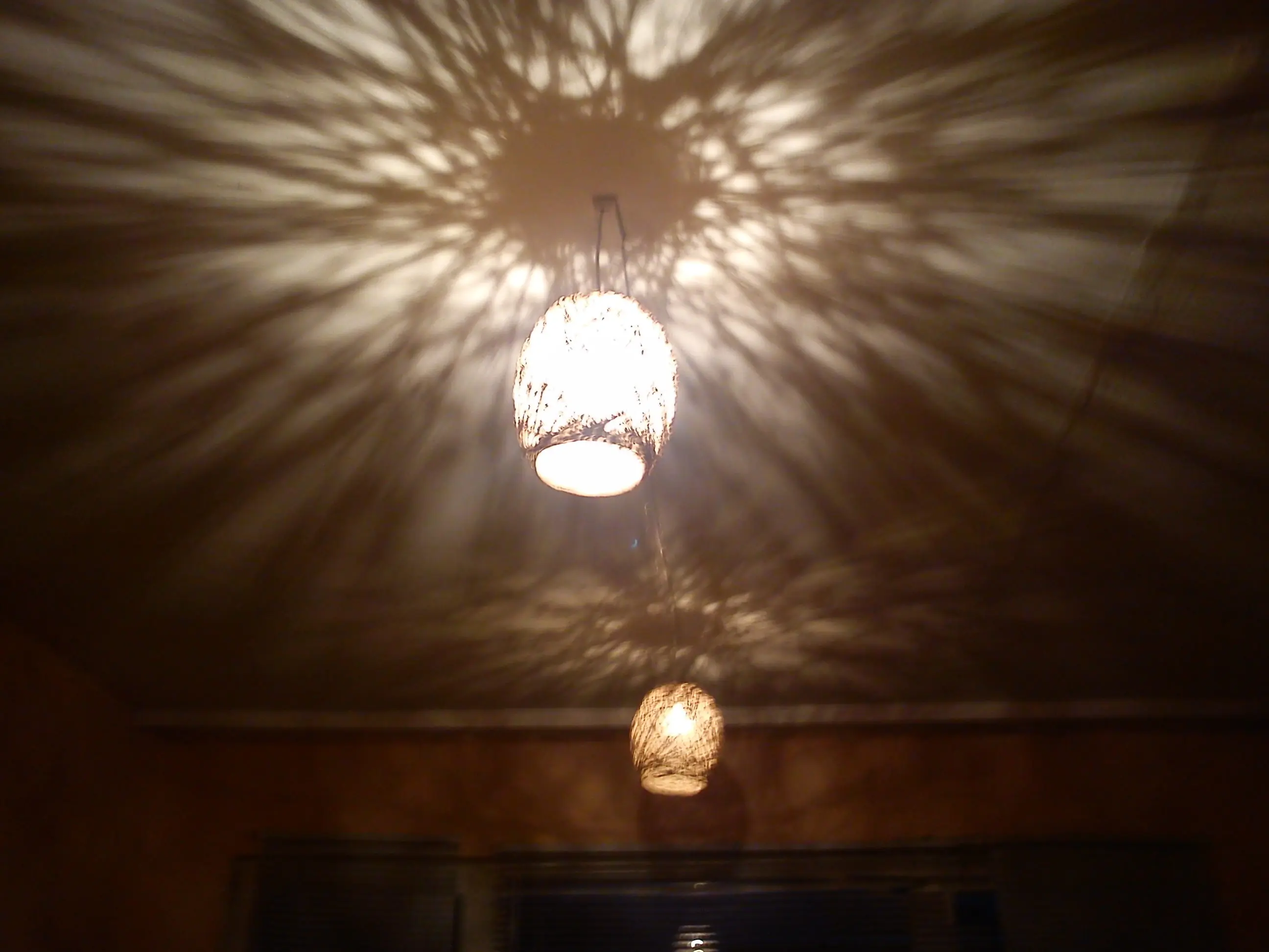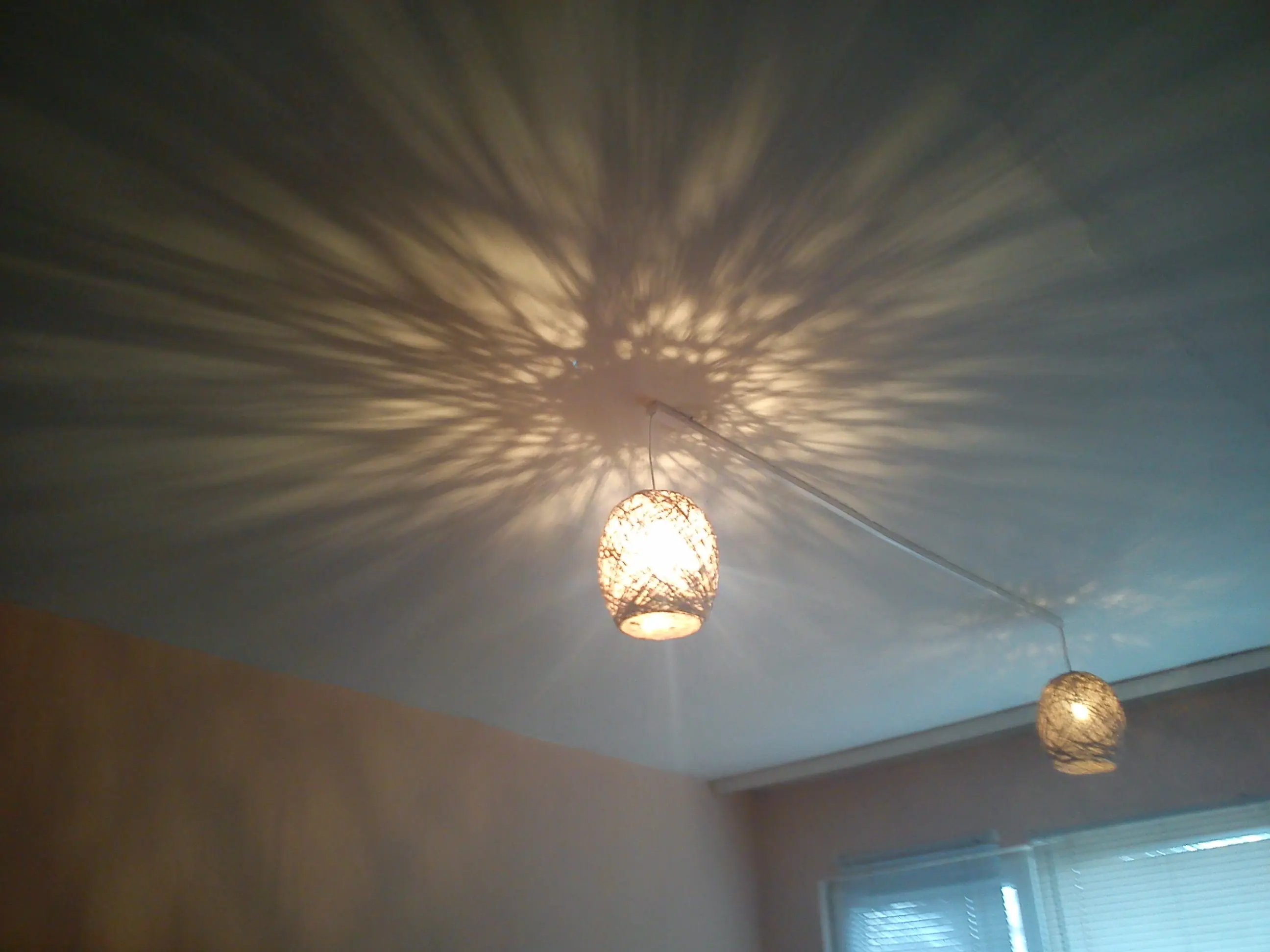 En la parte superior de las paredes y el techo se ve como si es sombra de ramas de arboles