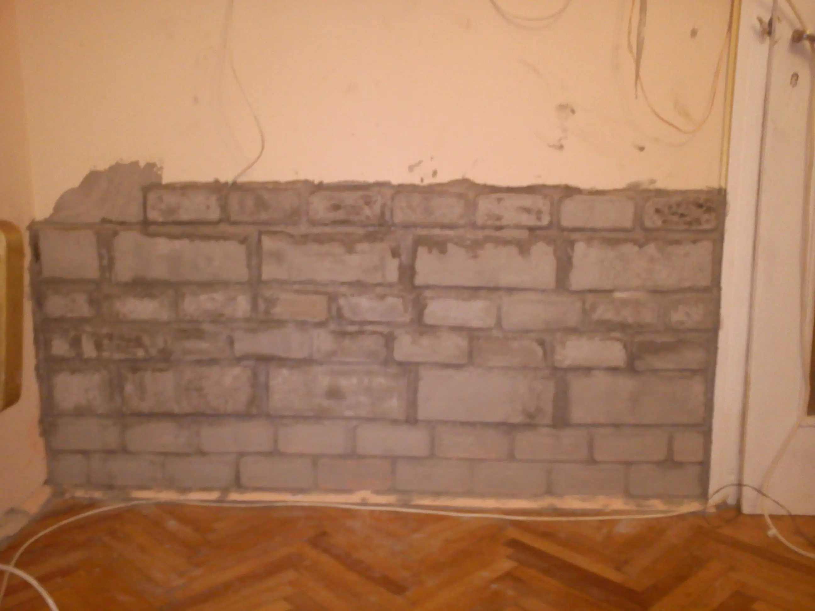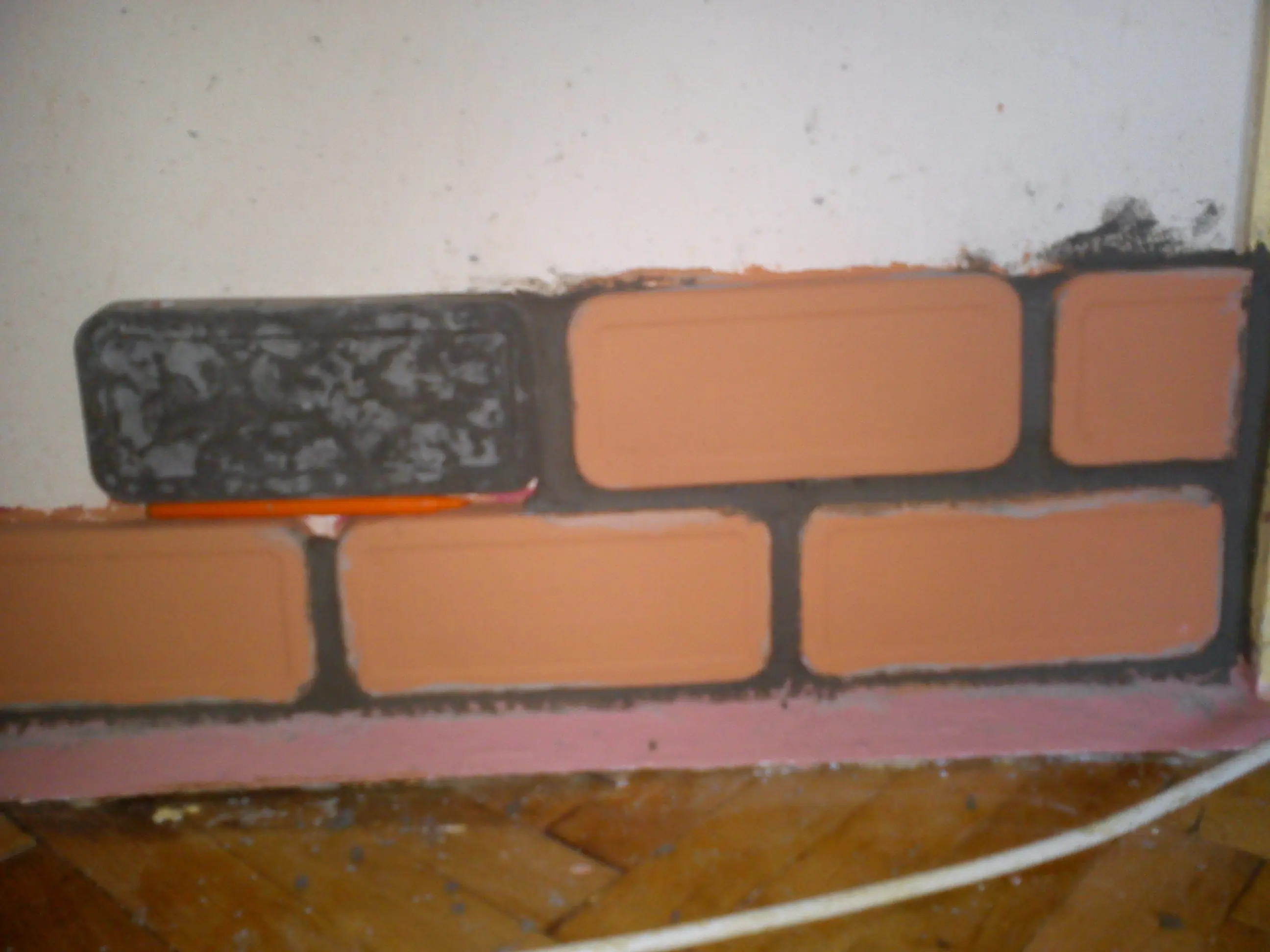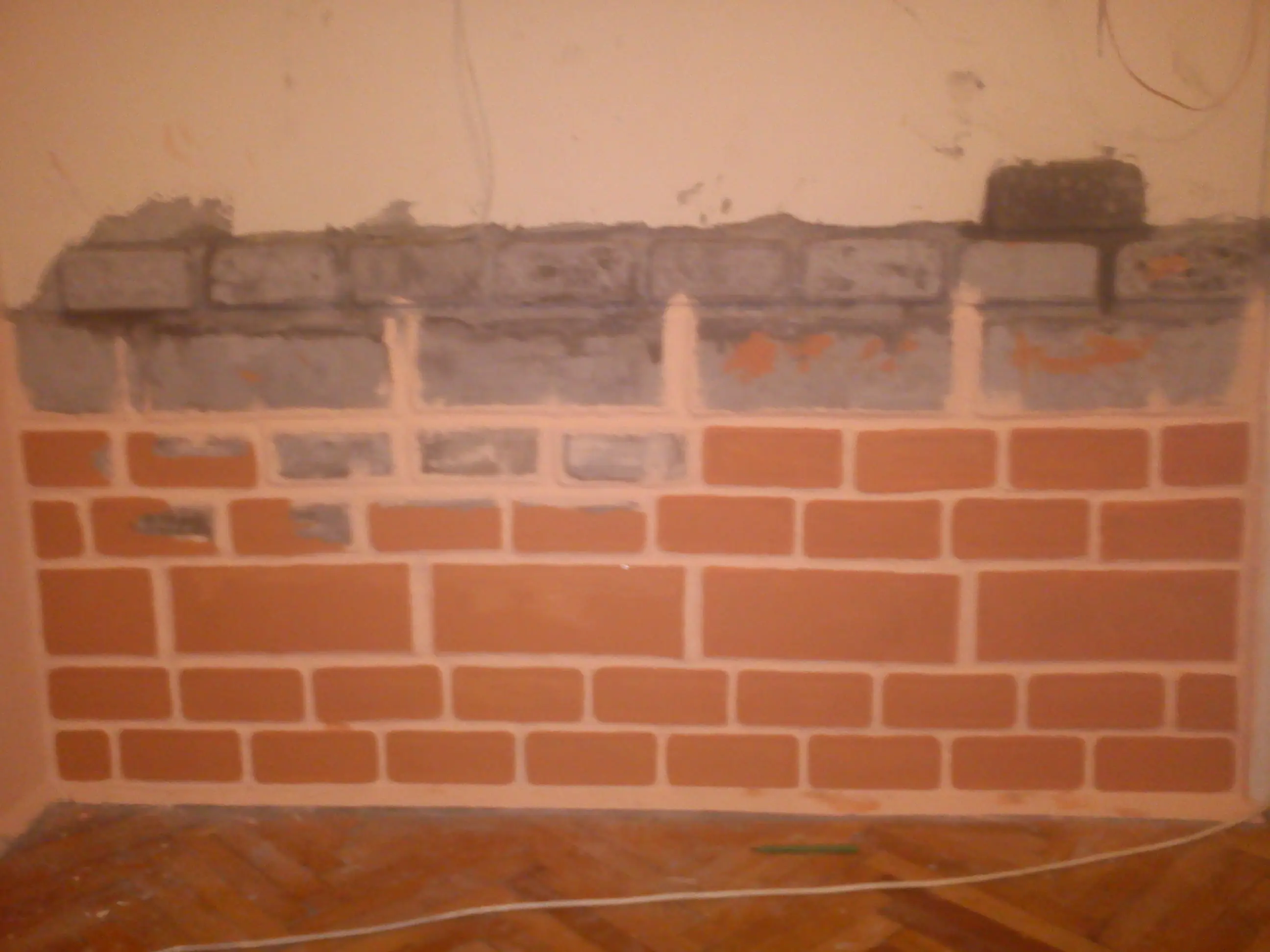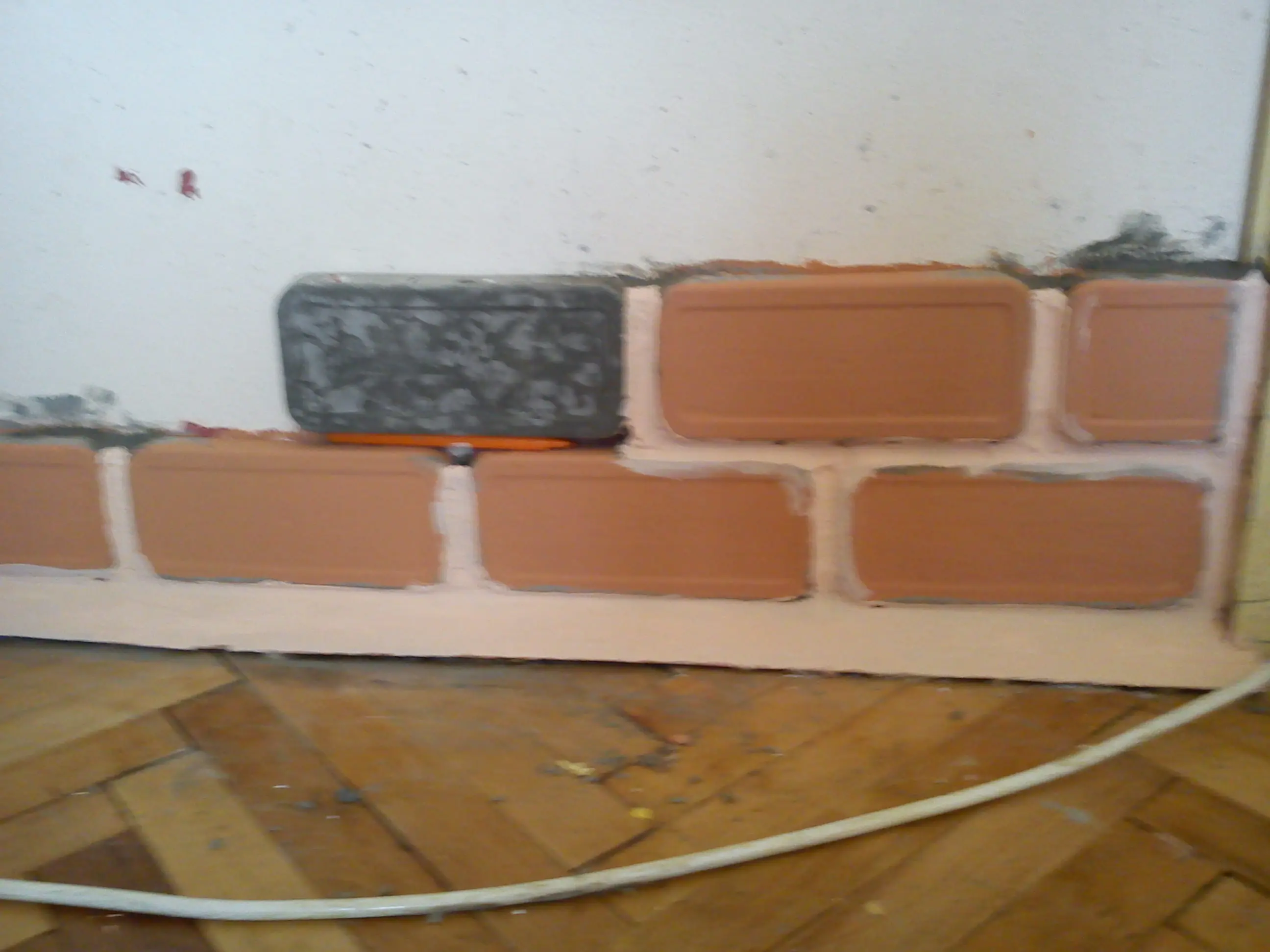 Aca ya tiraba la primera y segunda fila pegandolos a la pared y rellenando los espacios entre ellos