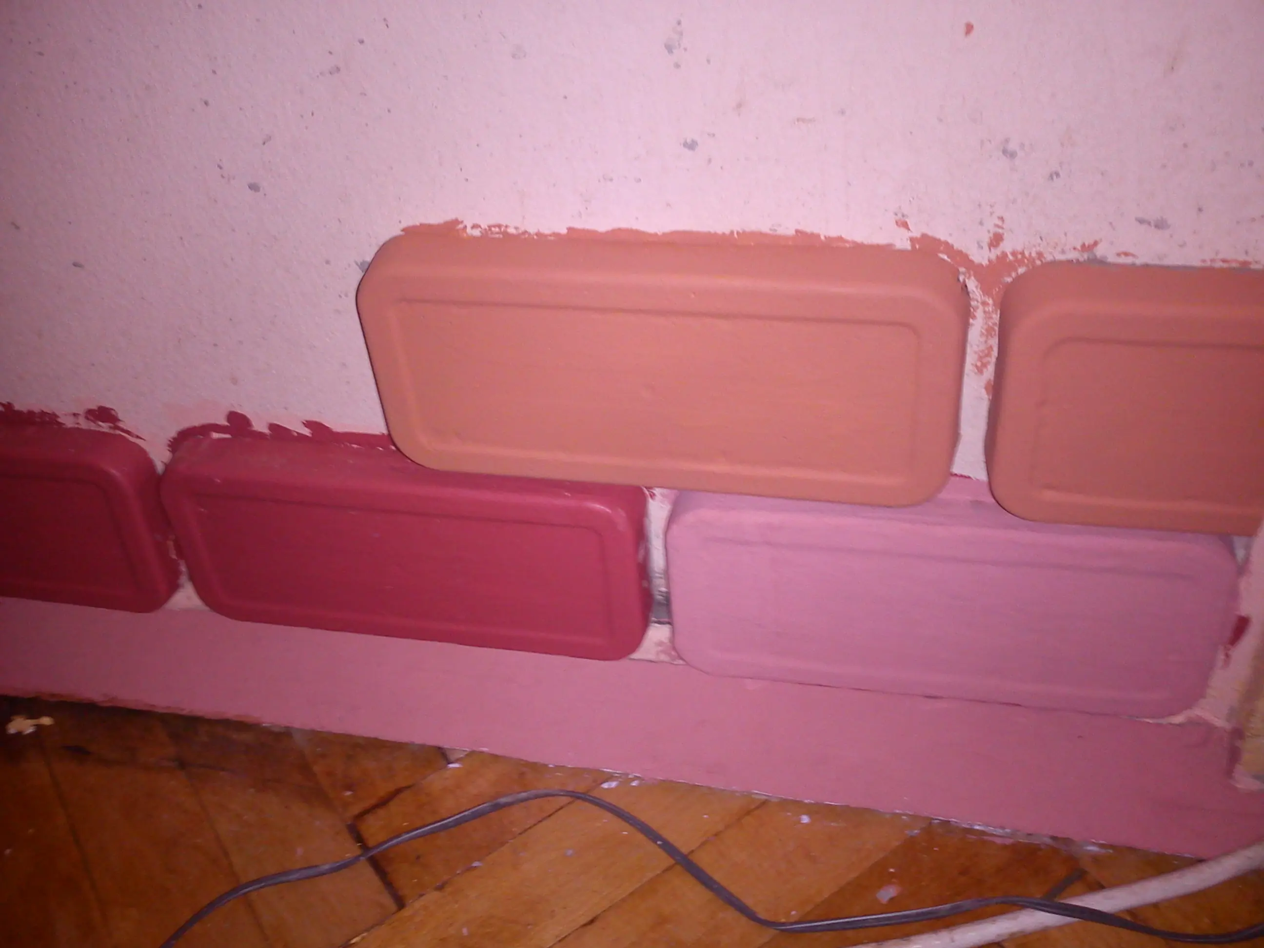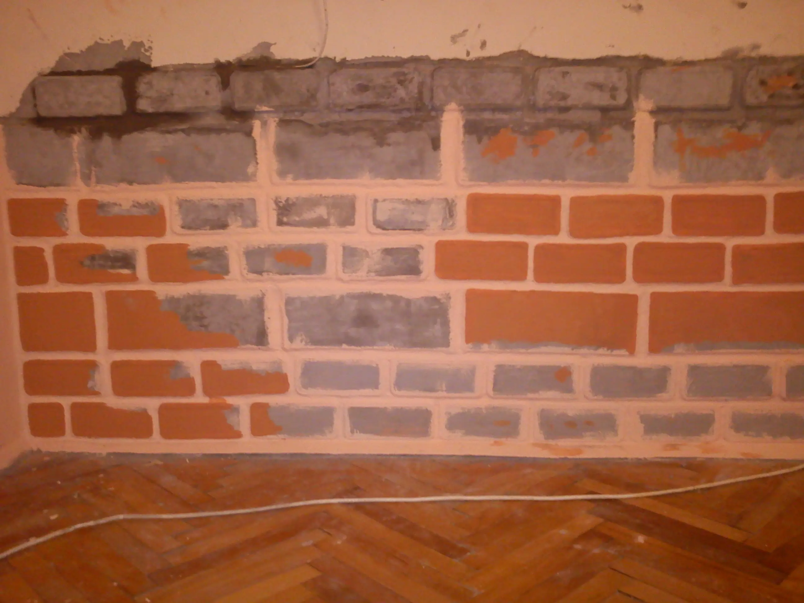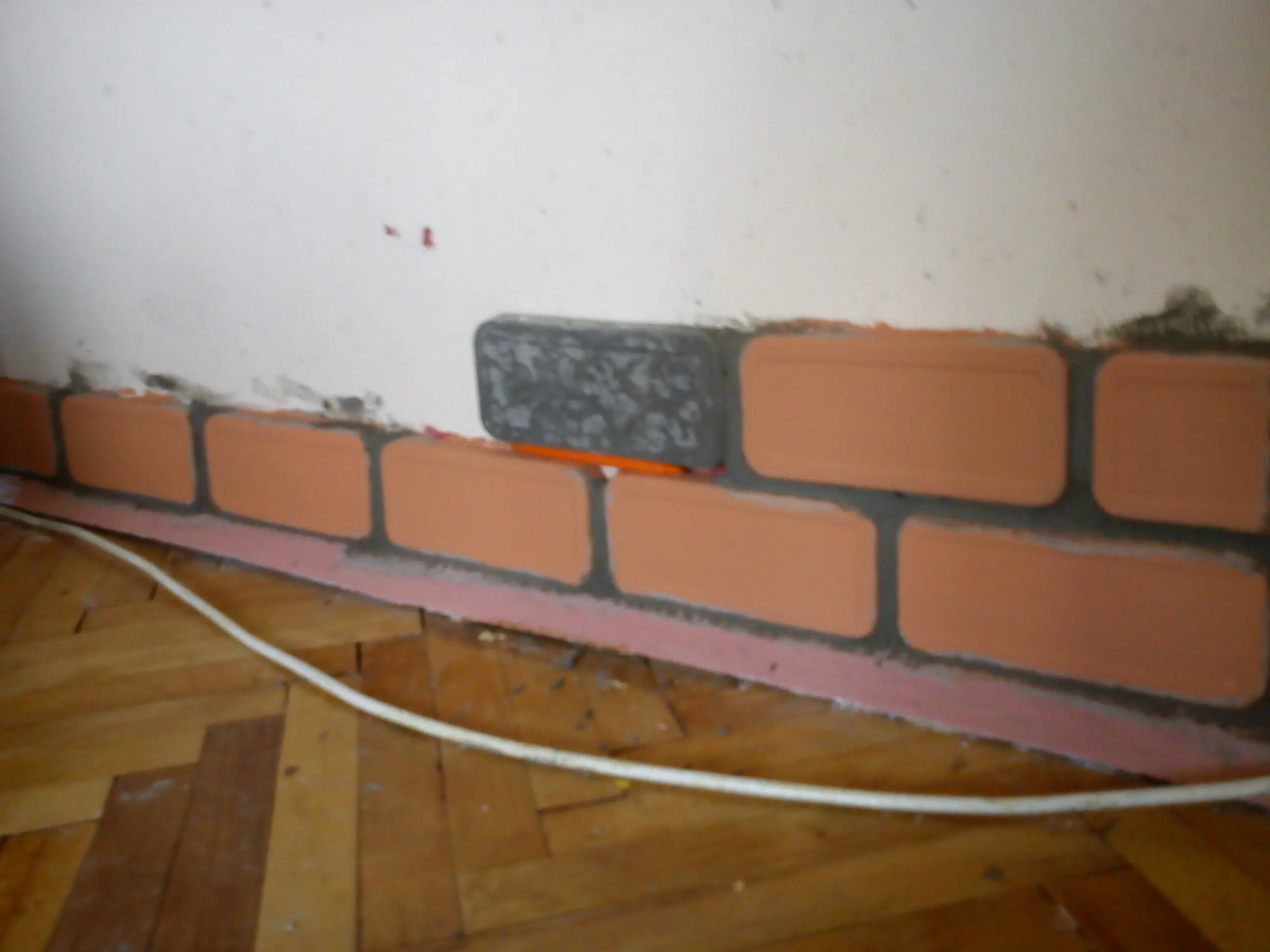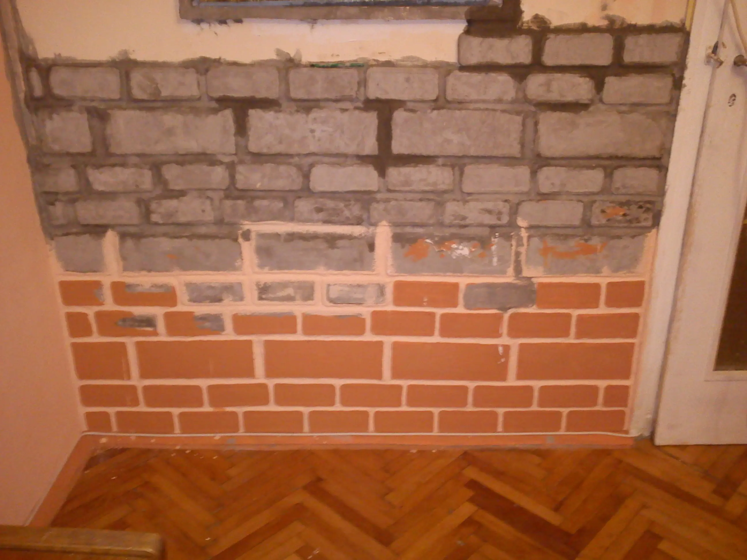 Aca ya tiraba la primera y segunda fila pegandolos a la pared y rellenando los espacios entre ellos