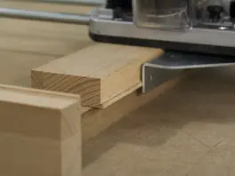 Los expertos suelen efectuar el corte 3 mm hacia dentro con respecto al trazado de la línea y después lo repasan con la fresadora de superficie en el tope paralelo. De esta forma los bordes del corte quedan perfectamente rectos.
